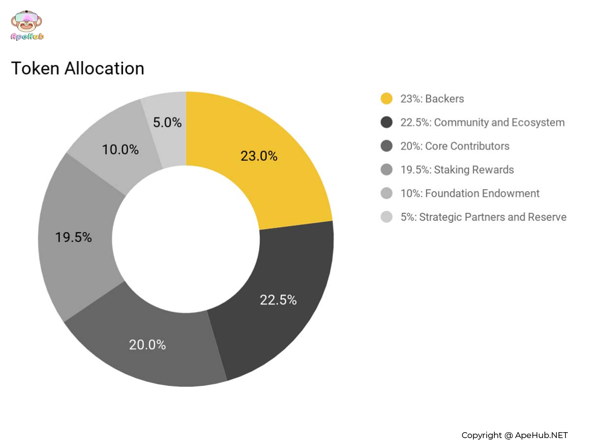 - Backers: chiếm 23% được dùng để bán token trực tiếp cho những người ủng hộ trước khi mainnet được ra mắt.